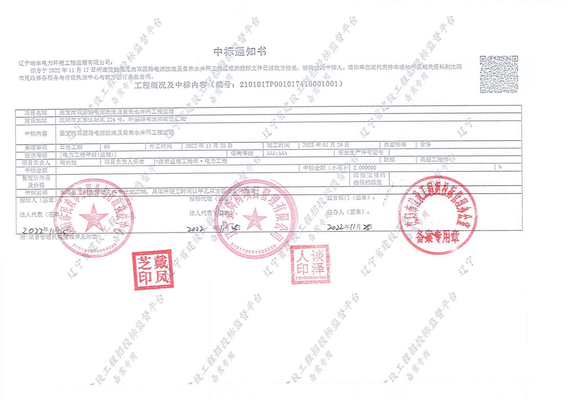 中標(biāo)喜訊-回龍崗雙回路電源改造及自來(lái)水并網(wǎng)工程監(jiān)理......